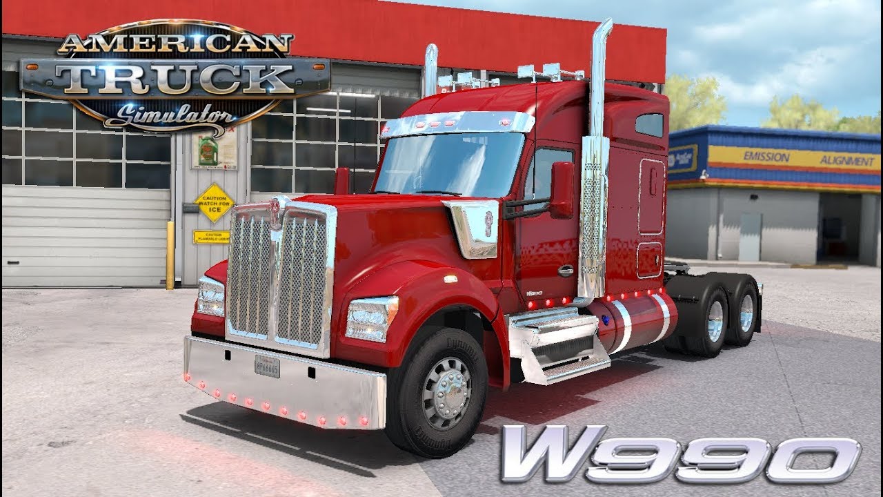 Kenworth W990 - This is Harven's edition of Frank Peru's w990. The mod was supposed to be just a fix for Frank's w990 but at some point I decided to do a complete overhaul. I removed everything (materials, textures, definitions, sounds, paintjobs - everything) from the mod and started with plain meshes. I did a lot of optimizing at this stage so the truck should not slow down the game too much . Lots of details which were in meshes is now in normal maps. I also replaced some models with lower-tris-count custom made ones. Since I made all the def files from scratch and also changed some locators and added new ones, you need to sell the old w990 before you activate this mod. Features truck Kenworth W990: - independent truck model - High quality 3D model - High quality detailed exterior - High quality detailed interior - the model has a passanger seat - the model has own wheels - the model has own sound - the model has own interior - present the illumination of arrow speedometer and tachometer - animation parts on interior - the character is correctly sitting in the driver's seat - the choice of wheels configuration - the choice of color body / metallic paint / skins - the choice of transmission, gearbox - the choice of power engine - correct position of the Kenworth logo - The correct position of the player - Working headlights, brake lights, tail lights, front and rear turn signals, steering wheel and reverse signals - Tuning and accesories present - Supports all major functions of the game - buy from Kenworth dealer Changes in v1.2.7: - Adapted to the latest game patch 1.44 Harven, Frank Peru, Yekko Yek, Kriechbaum, 3D Molier Credits: Harven, Frank Peru, Yekko Yek, Krie |