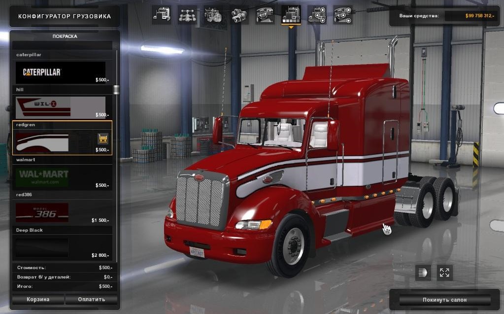 Buy at Peterbilt and custom mod dealer - 1 Cabin - 1 Chassis - 6 Engines - 8 Transmissions - Custom skins like CAT; Walmart and others - Template included in the mod file Changes - Update for 1.35 - Fixed F2 mirror crash - Added trailer cables - Added standard ATS licence plates - Added real engine sound for each engine - Added 2 more engines(Detroit Diesel) with own sound - Added compatibility with ATS Hanging Toys from Steam like chainsaw, bears, Xmas trees etc. Author rus47tam Credits: rus47tam, vovangt4, Stels, Stas556 |