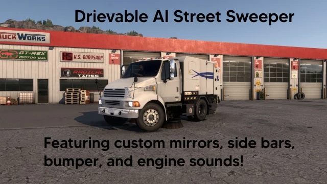 Update: 05.11.21 1.42 compatibility IMPORTANT! If your game is crashing after you use the mod, please check your game.log.txt file in your Documents\American Truck Simulator to determine if it is the mod or another mod conflicting somehow! Description It is the ai street sweeper but driveable. ‘Bout as simple as that. The model is just the SCS ai model, with some modifications and extra configuration options. It can be purchased from the Volvo or Peterbilt dealers/mod dealers. Enjoy being able to drive around in and maybe bully the ai with a street sweeper. Features Custom engine sounds + engine Partially redone lightmask Slot option for cab roof lights 3 Mirror options – Regular(AI texture), Paint, and Chrome. 2 Bumper options – Regular, Chrome custom 2 Side handle options – Regular, custom(both chromed). Functioning rear amber light bar Chassis Options: – Regular 4×2 – Hook 4×2 if you want to use it with trailers – Rear Steer 4×2. Have fun. It does currently uses the SCS Volvo interior, as I have not yet decided to dive into making an interior for it. Things to be added Support for cabin accessories and Steering Creation DLCs Custom interior Beacon options Horn options Some touch ups here and there, mainly tuning the lightmask a bit Come up with a way for actual loads to be done with it, likely not possible until SCS implements rigids. Credits: Sk3lecreeper |