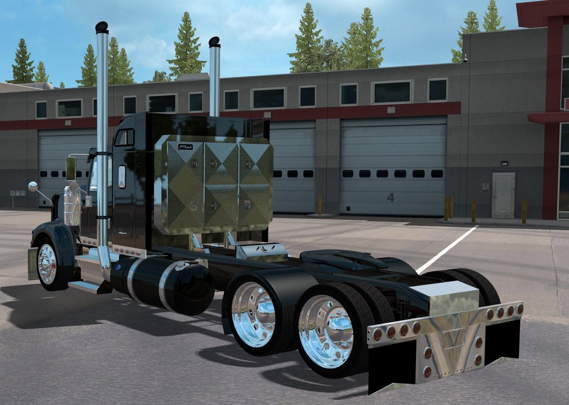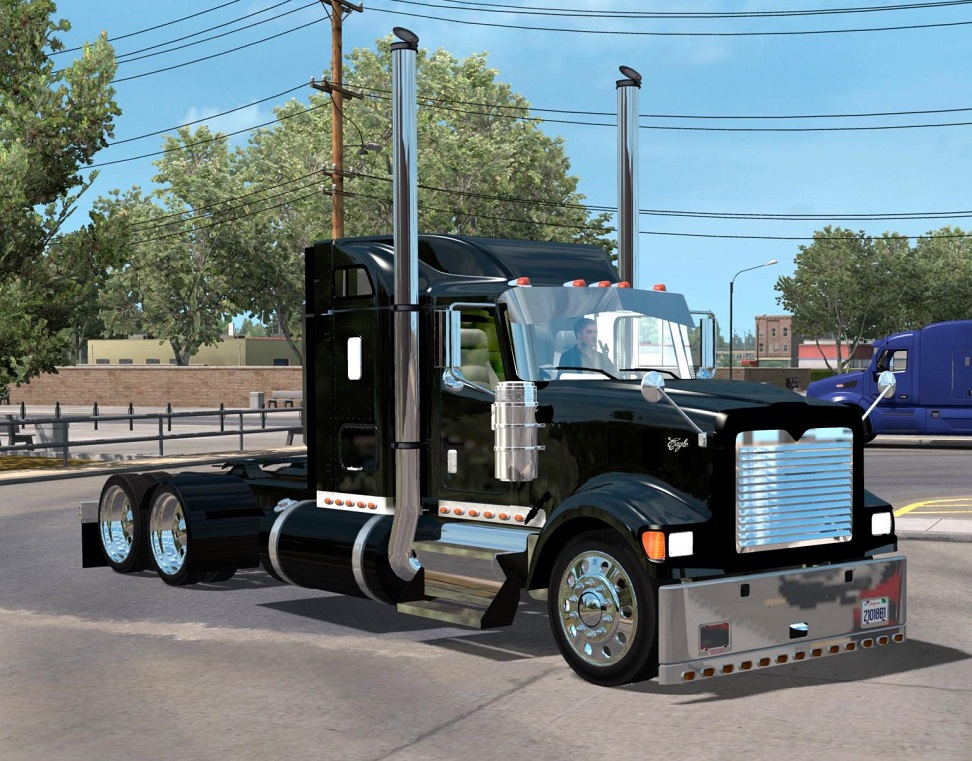 International 9900 for American truck simulator added racks fenders bumpers visors exhaust rear mudflaps with lights fuel tanks airlines on cab and box airlines Tested on 1.35.x version Credits: ultra |