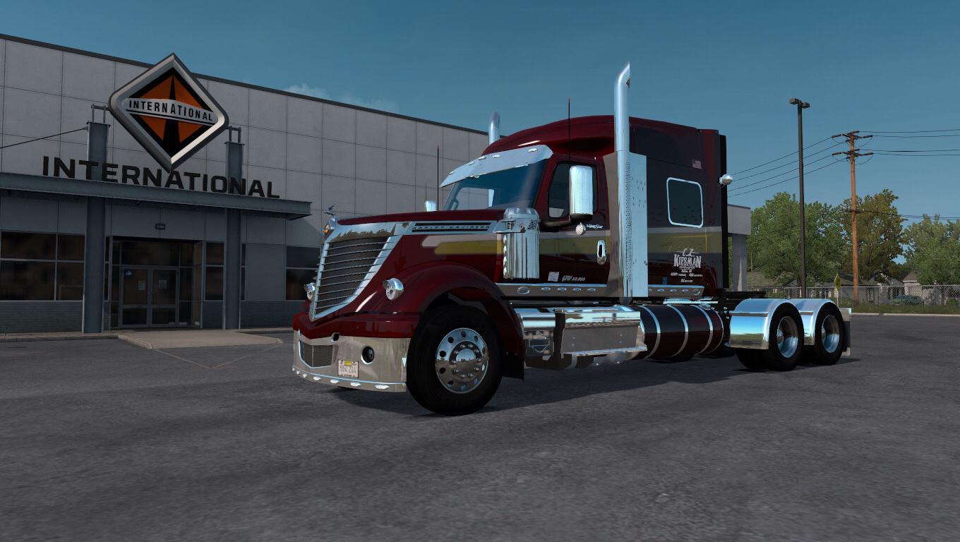 Steve was more than generous to provide all the parts to convert the SCS International Lonestar into the Harley-Davidson Edition. This mod replaces the existing lonestar with a reworked version. Some parts will work with the stock one, however all parts will work with the 5150 73" sleeper and 5150 frame combo. This is by design, so you can truly have a work of art. I stretched the highrise sleeper to the 73” Modeled International into the back of the sleeper (not sure why SCS chose to use a bump map when the rest of the back wall is modeled) it only added around 2,000 polygons. Made the chrome for the back of the sleeper Fancy mudflap hangers with anti sail plates Made the visor a bit bigger New fuel tanks (not final) New rear fender option (will have a couple more) Made a light bar for the bottom of the front bumper Lights on the mirrors New exhaust(will have a couple more) And most onvious.. the Harley Davidson edition headlights and grille. evh5150vanhalen, The Other Corey and 5150 3D Credits: evh5150vanhalen, The Other Corey an |