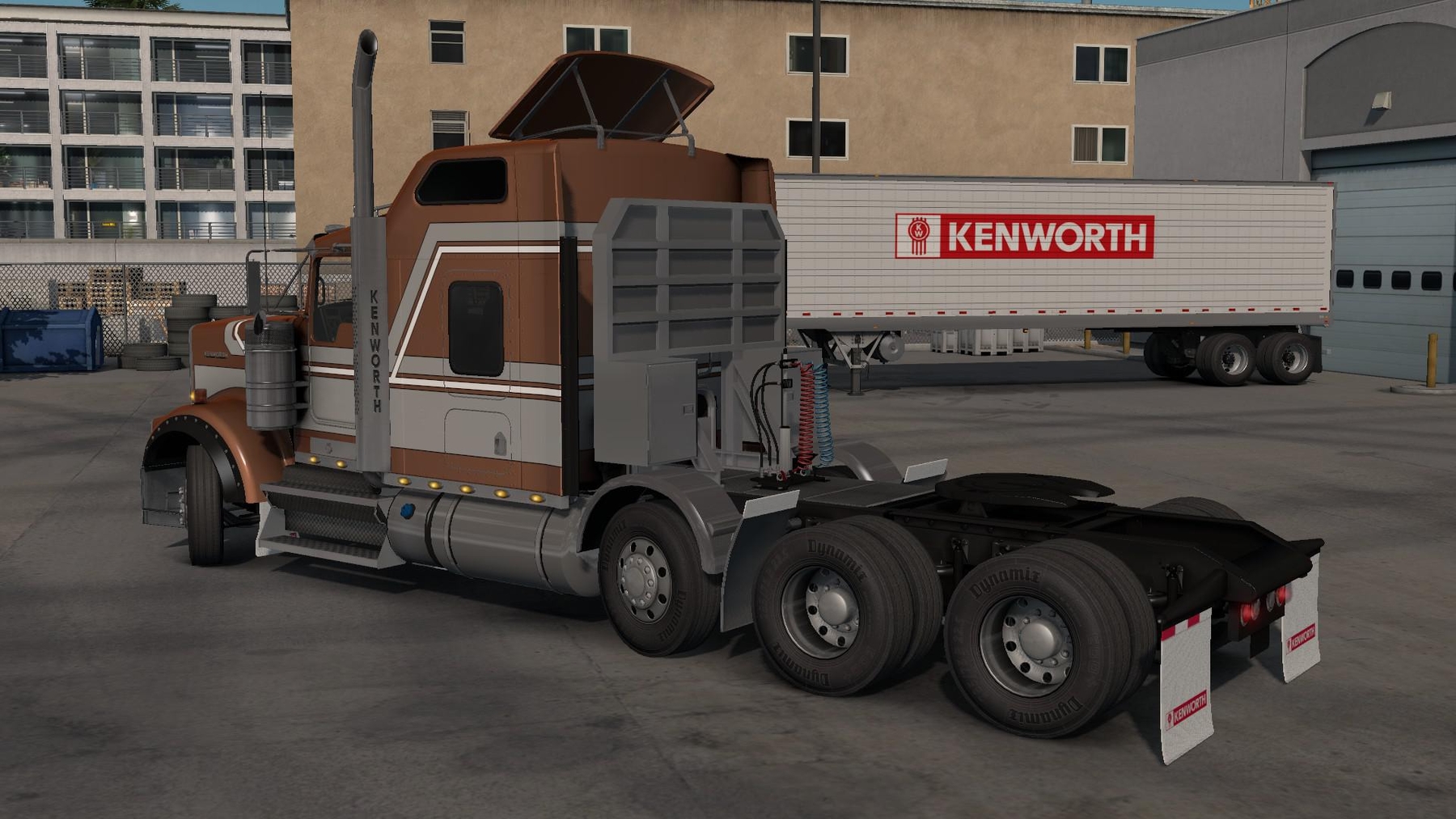 - Standalone. - Kenworth dealer. - 3 cabins - Standard chassis set + 8x4 with sloth - Beauty + skins - Default interior and sound. - SISL Pack Support - Сable support Updated: - Update for 1.35.x - Compatible with its own car dealership for mods - Changed the file format according to the latest patch Wolfi, SCS - model Natvander - def files, technical component DaStig, Sabr, Natvander, Wolfi - coloring, UV Mapping / Pattern SiSL - add-ons support for interior, interior and mooring on the steering wheel, separate files, Steam Workshop version Carl1992 - files not related to Steam, beta testing Azu - beta testing Credits: Wolfi |