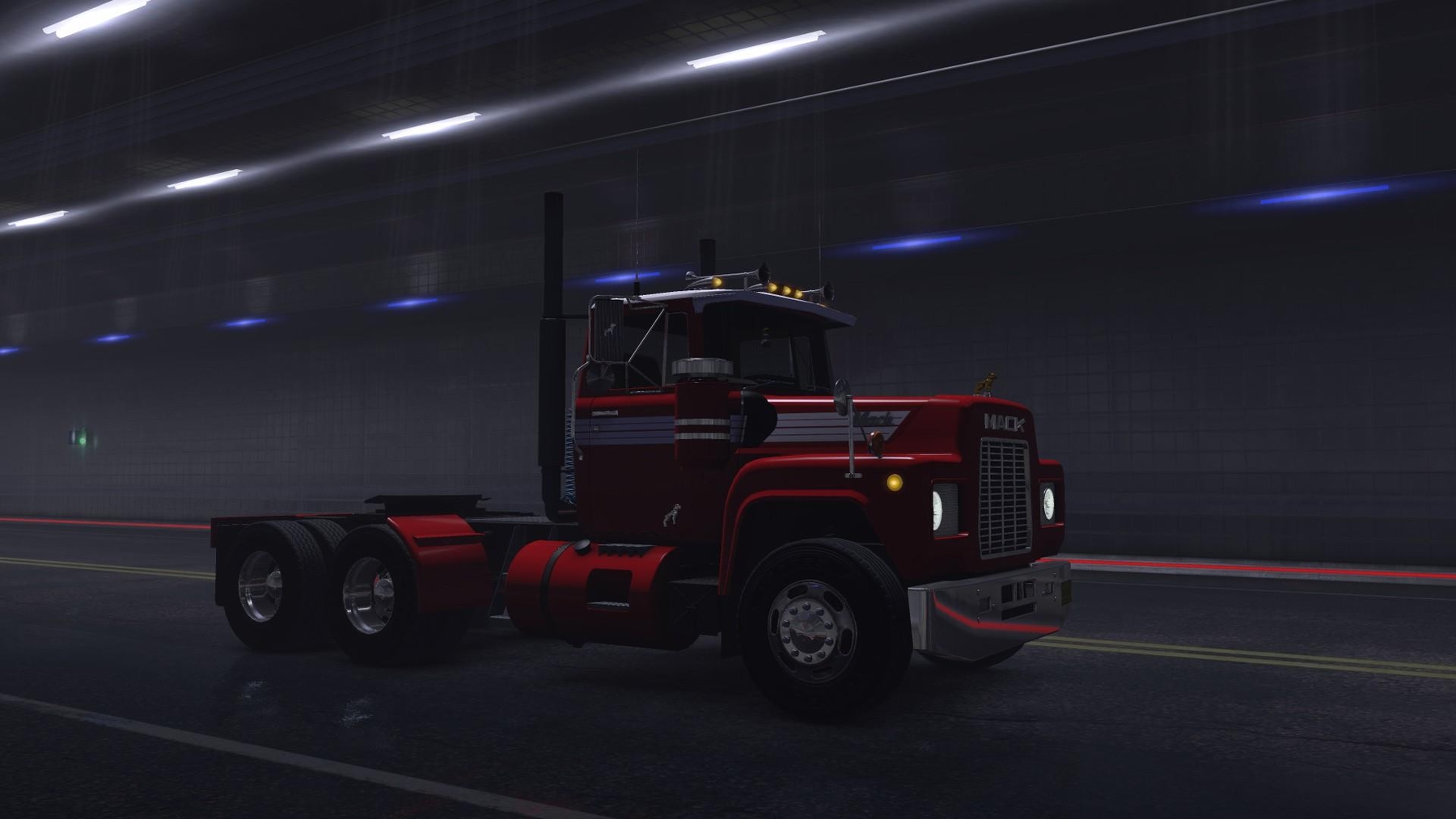 I'm pleased to present to you the mod I've been working on for over two years. But don't be affraid or discouraged, it doesn't take that long to make a truck mod ;). I've been working on many other projects in the meantime. To the point: It's finally here - the Mack R series truck. The model dimensions are based on specs from late 70, so are engines and transmissions, therefore don't expect high performance from this oldie. She will pull but you have to be patience and work together with her ;). At the end of the job you will feel the joy of accomplishment! (if you manage to get in time ;)). Since this is the premiere of the mod there is a moderate amount of parts to customize. I plan on adding much more with future updates but please be patience, this is not the only mod I'm working on/maintaining. The mod name is Mack R (and not R600) because in the future I will add R700 hood and parts. I will not reveal all planed features yet so that if for some reason I will be unable to add given feature you will not be disappointed ;). Instead I can list things I will not add for sure: 1000+hp engines, modern engines, modern transmissions, more than tri-axle chassis, UK cab variant, lowered chassis, "chipped" engines... you can see where it's going. I want to keep this truck true to real life original. Features: Real dimensions based on Mack specs, Real engines and transmissions with torque curves, ratios and other parameters, Fully animated detailed interior, All standard SCS truck features, like advanced coupling, trailer cables, etc. Detailed models based on many reference photos (thanks to Trayscapes and Google images), with reasonable triangle count which should not kill your GPU ;), Beautiful engine sounds made by Kriechbaum (6v92, Mack E6) and recorded by Trayscapes (Mack E6), Original paint jobs made by Lucasi, Pauly and me (not my wife this time, she's babysitting currently ;), No errors, no warnings and hopefully not conflicting with other mods (nah, there is always a poor mod that will break things ;) but not this one!), Next Gen Scania paintjob system (all skinnable parts have their own templates, except air cleaners, they are on the cab template), Currently only R600 hood with day cab. Can I finally go drive the truck and not write this silly description? ;) The truck is available at Kenworth dealers. About Maxitorque trnsmissions: I don't know of a shifter that will let you use some transmissions like they are supposed to be used (like TRTXL 1070 with 12 speed forward and 5 reverse). Please let me know if you came up with a custom shifter layout that is not very tricky to use. Some answers to common questions (sadly mostly negative it seems ;)): - It will currently not work in TruckersMP (unofficial multiplayer mod) but who know what are their future plans ;), - I will not add engines which were not used in this truck or which sound like broken washing mashine ;), - I'm not taking requests for mods or skins, - I will keep updating the mod with more features but don't expect frequent updates (apart from bug fixes) Support mods for various DLCs: Steering Creations Pack DLC Dragon DLC Steering Wheel Valentine's Day DLC Steering Wheel Included skins: - Pauly - "Rainbow Mack", "Red Velvet", "Mack Multi R" - Lucasi - "Retro Stripes Mack R", "Mack R Vintage Skin" - Harven - "Two Colors", "Road Warrior", "Three Stripes Metallic", "Value-liner" Credits: - Harven, Kriechbaum, Pauly, Lucasi, Trayscapes, RTA. About RTA commitment: The mod uses parts from RTA's Mack Superliner interior - namely: interior upholstery and interior cab body models. The rest of the interior is made from scratch, this includes: dashboard, all gauges, switches and knobs, labels, steering wheel with column and attached sticks, gear shifter, heater and seats, roof vent hatch, floor mats and pedals. All animations are also made from scratch. Not a single texture from the Superliner is used. I greatly reduced the number of triangles in the interior upholstery and interior cab body models. Credits: Harven, Kriechbaum, Pauly, Lucasi |