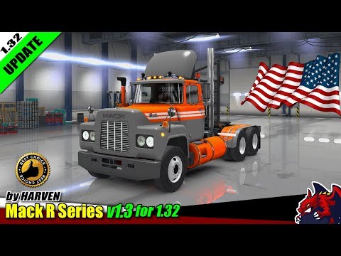 v1.3: - Painjobs def changes and headlights def changes to support 1.32 game version, - Moved logging headache rack to separate model (fixes bright blinker in interior when not using the rack), - Fixed rotation of dashboard toys set (fix for compass accessory), - Small adjustments to 5th wheel. Features: -Real dimensions based on Mack specs, -Real engines and transmissions with torque curves, ratios and other parameters, -Fully animated detailed interior, -All standard SCS truck features, like advanced coupling, trailer cables, etc. -Detailed models based on many reference photos (thanks to Trayscapes and Google images), with reasonable triangle count which should not kill your GPU -Beautiful engine sounds made by Kriechbaum (6v92, Mack E6) and recorded by Trayscapes (Mack E6), -Original paint jobs made by Lucasi, Pauly and me (not my wife this time, she's babysitting currently ;), -No errors, no warnings and hopefully not conflicting with other mods (nah, there is always a poor mod that will break things ;) but not this one!), -Next Gen Scania paintjob system (all skinnable parts have their own templates, except air cleaners, they are on the cab template), -Currently only R600 hood with day cab. -Can I finally go drive the truck and not write this silly description? ;) -The truck is available at Kenworth dealers. Support mods for various DLCs: -Steering Creations Pack DLC -Dragon DLC Steering Wheel -Valentine's Day DLC Steering Wheel Credits: Harven, Kriechbaum, Pauly, Lucasi |