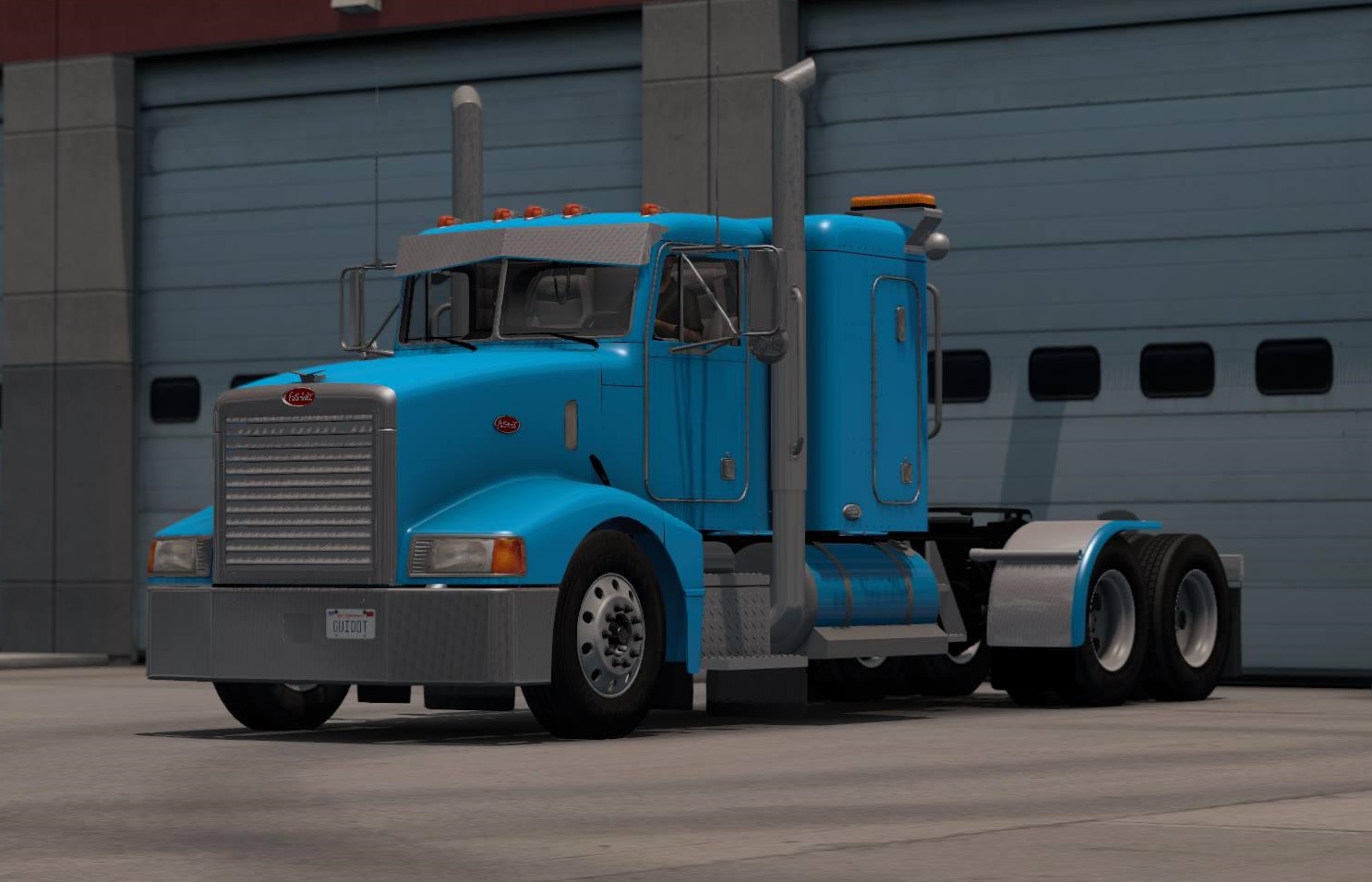 Changes: - Updated for 1.34; - Fixed tri Axle chassis; - Fixed N14 2.0 engine sounds. - Standalone - Dealer Peterbilt - Three cabins - Different chassis - Various engines and transmissions - Own interior - Tuning - Own sound - DLC Steering Creations Pack support - Support of skins (the template in the archive) AMT guidot (bake, daycab, multiple edits) KW_Driver (Transmissions) Kreichbaum (Sounds) BK Vissers (testing) Credits: AMT |