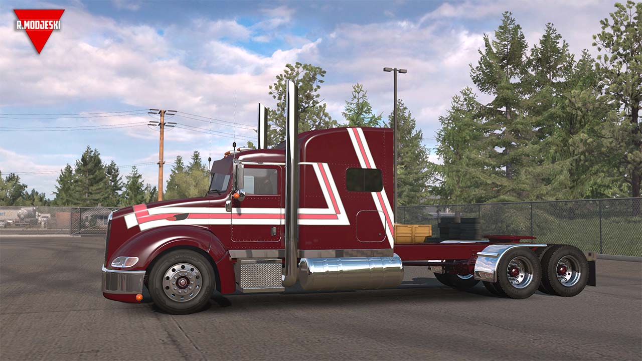 Contents: -Truck chassis variant(s) for Truck 'n' Trailer option (I recommend Deezle's 3xx mod!) -Multiple cab options -Multiple chassis options -Cab trim both painted and stainless -Mirror accessories -Wilson antennas -Interior CB Radio (has physics) -Stock antennas (forward variant included) -Watermelon lights -Lollipop lights -Additional cab accessory nodes (back of cab) -4" lights, in Amber, Red, and White (reverse) -Rear lightbar options -Step boxes options Updated model version Fixed some bugs Added mod icon Fixed version in manifest Adapted for patch 1.45x Credits: R.Modjeski, Colonel, SCS, Colt/Pioneer, Sisl, Harven, Cristian_exe, Tyrone's Booth, Piva Credits: R.Modjeski, Colonel, SCS, Colt/Pion |