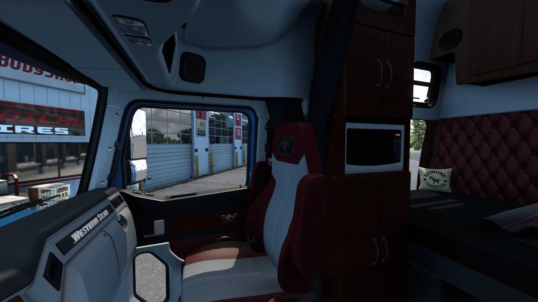 This mod is a reworked of a stock Western Star 5700XE and adds many parts for tuning for it. Changelog v1.1 – Added improved interiors for ’82 cabin according to brochure. – Added items from DLS Toys for the cabinet. – In the cabinet, you can change the microwave or TV, or remove them. – Fixed steering wheel textures and their position. – Added a rotate camera to the interior. Now you can relax on the bed! Includes: – bumper – filters – mirrors – SideSkirts – lattices – Sunscreen visors and more Credits Sherman Credits: Sherman |