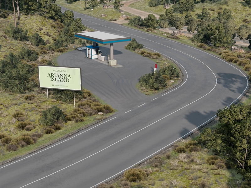Arianna Island is a relatively small island, approximately 1600x1200 meters. It includes about 15 kilometers (9.3 miles) of paved and unpaved roads combined and has quite a few interesting places to explore. The bridge leading to the future Ariel Island is under construction and will hopefully be completed soon.