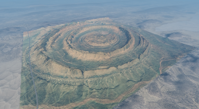 Welcome to the desert. This ultra cool formation is from Mauritania and is known as The Eye Of the Sahara or the Richat structure. It's a huge off road ring for multiplayer races. Credits: BeamNG |