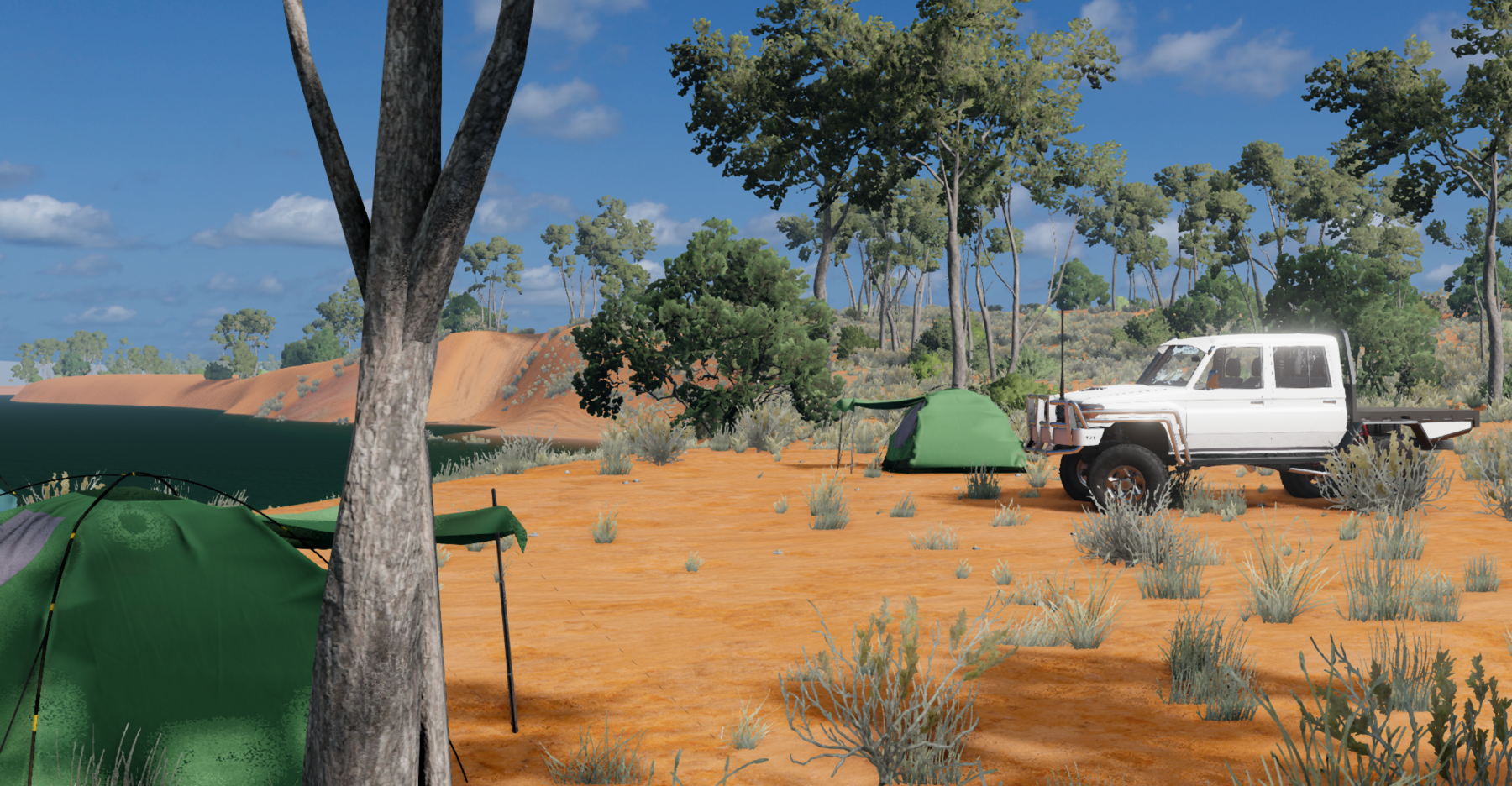 The map is based on the Finke region and the Australian outback in general. - The desert. Flat terrain. One big sand dune in the middle. Lots of trees. Credits: Freakys, Breeks |