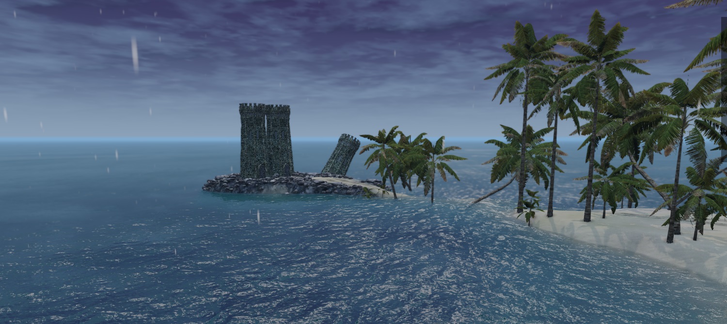- Rocky terrain: Navigate through a landscape filled with rocks, ferns, and palm trees.