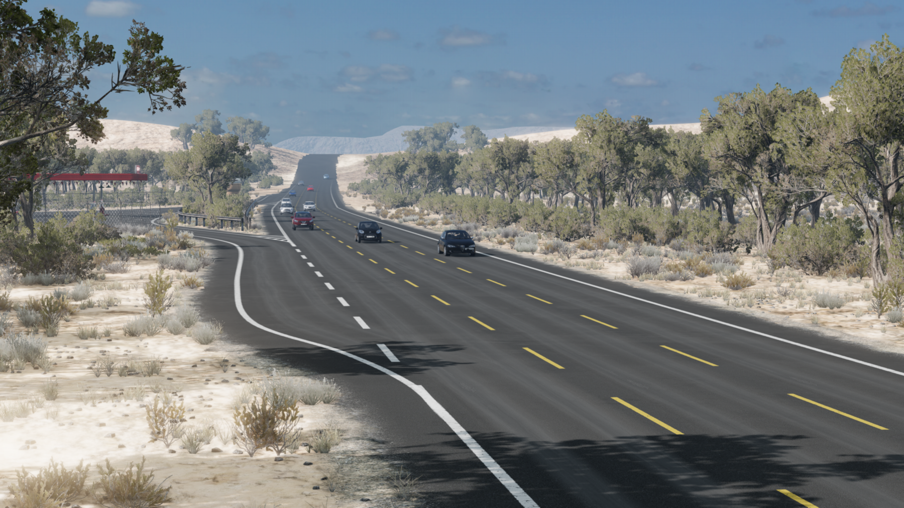 This is a desert map with a one-way highway for BeamNG. The main goal is simple: driving fast and maneuvering in traffic. Therefore, there are no hidden roads or off—road sections to explore - this is a simple ring highway created for a calm ride and gameplay in the traffic.