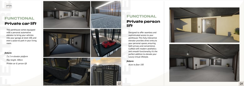 After a year of hard work, building and designing for many days, this moment has finally arrived — now you can enjoy it too! Countless hours of dedication and passion went into making this a reality. Discover unparalleled virtual luxury at the Penthouse level. Get exclusive access to a stunning penthouse with fully interactive elevators, doors, and a dedicated underground truck loading area. Enjoy a spacious exhibition hall with multiple exhibition areas, an underground garage with multiple parking spaces, a state-of-the-art wellness center, and an elegant personal elevator for unobstructed access. This level provides the perfect combination of style, functionality and innovation for the highest quality virtual experience. ✔️ A working JBEAM throughout the penthouse and dealership Credits: Jasper |