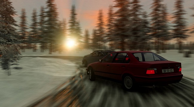 Winter drift map. – Snow physics; – Forest road; – It looks amazing; – Good for screenshots.