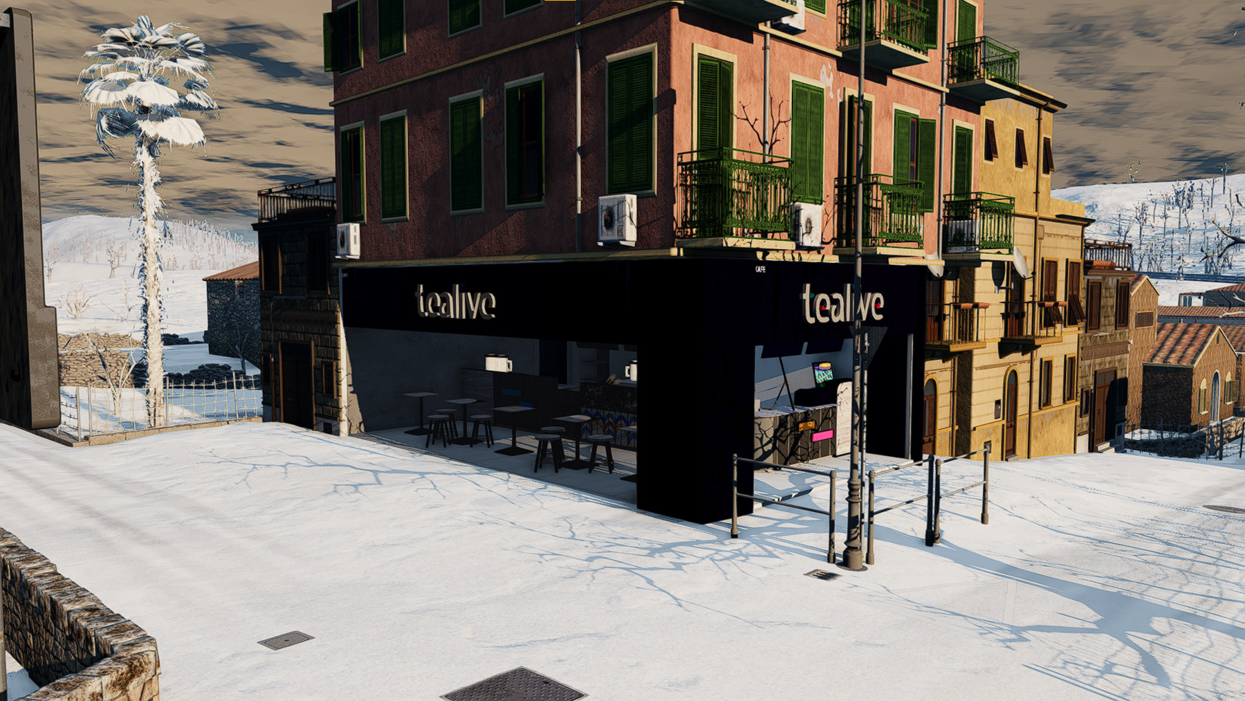 - 9 houses with individual interiors; - 2 car repair shops; - 2 McDonald's locations; - New city; - 3 Burger King locations; - 3 Starbucks locations.