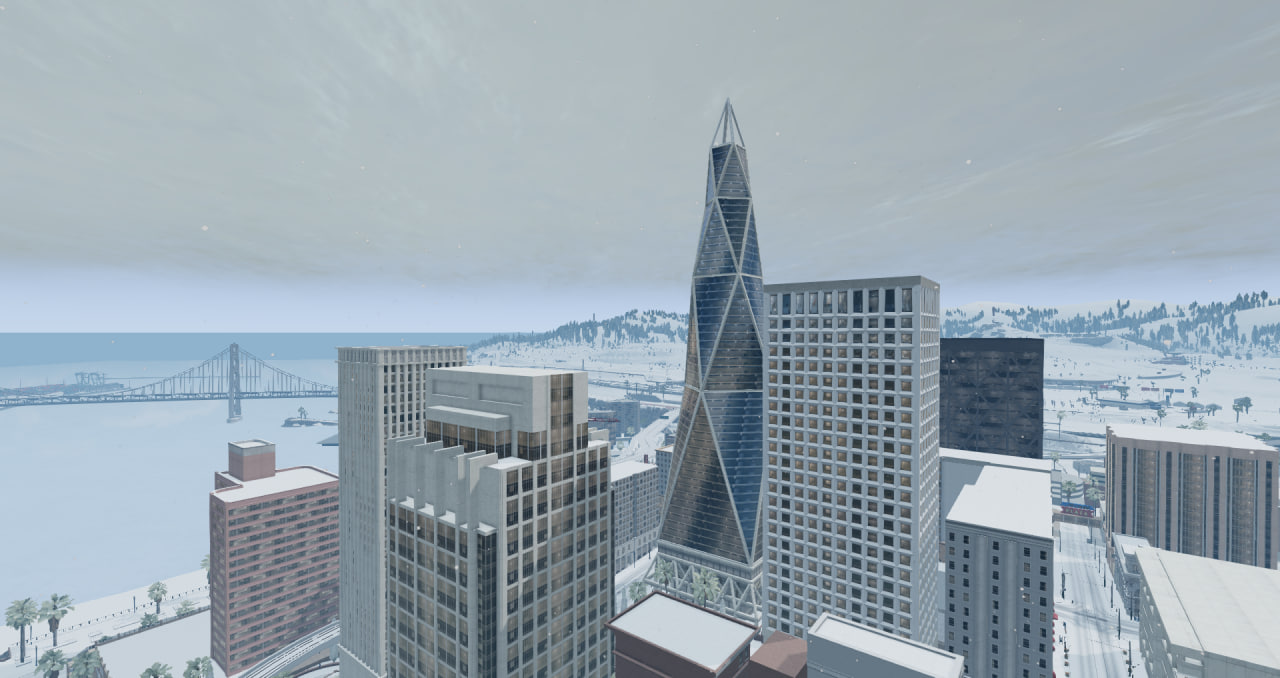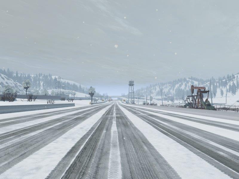 According to all known recent weather conditions, there should be no snow in California. Joking aside, this map has snow-covered roads (with reduced friction) and many other custom elements. Reduced friction on the roads may not be the most realistic, but it's really fun to slide and go into drifts that you normally can't do. In version 0.38.1 (11.12.25): Credits: _Octopus |