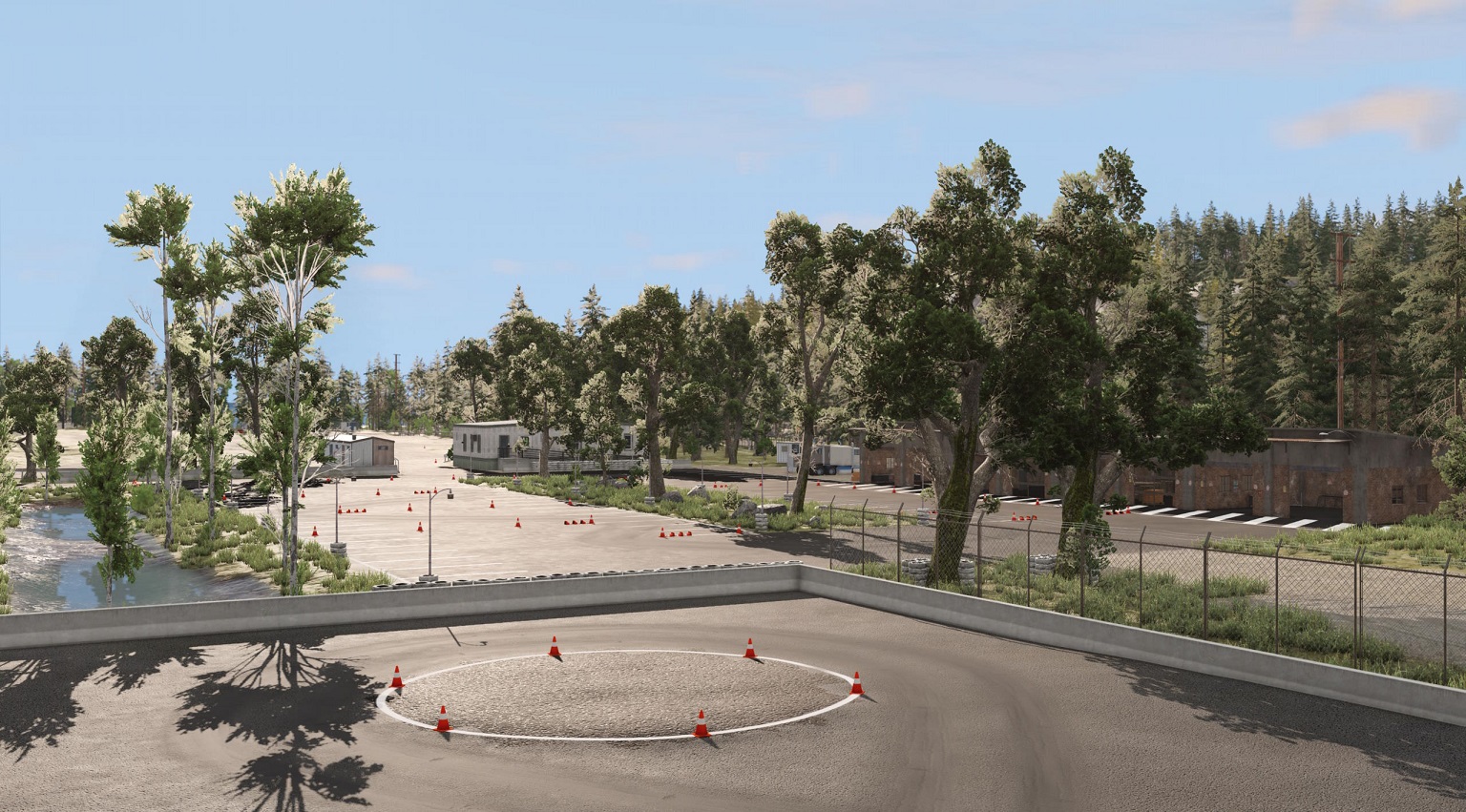 The main focus of the map is on a race track called Xero Speedring with 5 different layouts (full, Grand Prix, short, full classic, short classic). This highway was built in the 1980s after the local airport was closed and a lot of land became available for use and could be bought cheaply. As a result, there are some fairly long straights on the track, as well as several street-type aspects as you approach the warehouses at the far corner of the track.