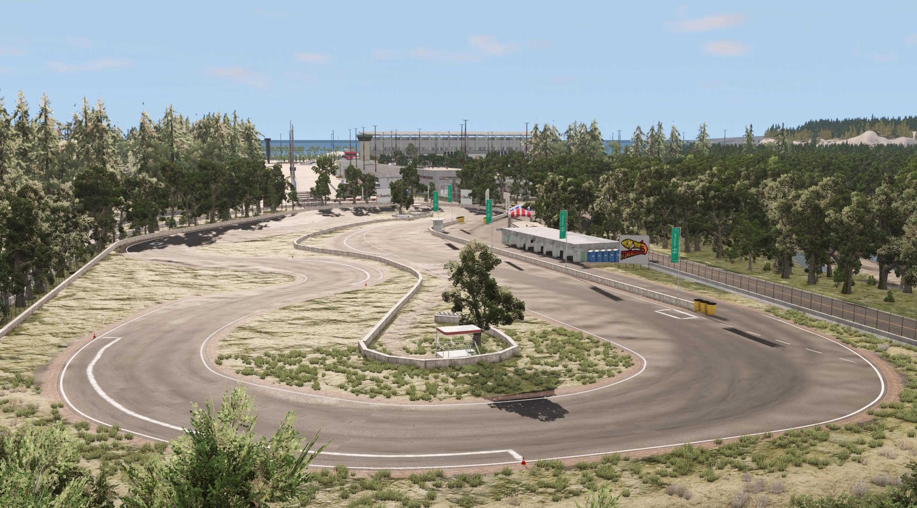 The main focus of the map is on a race track called Xero Speedring with 5 different layouts (full, Grand Prix, short, full classic, short classic). This highway was built in the 1980s after the local airport was closed and a lot of land became available for use and could be bought cheaply. As a result, there are some fairly long straights on the track, as well as several street-type aspects as you approach the warehouses at the far corner of the track.