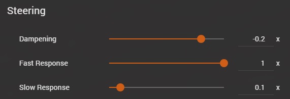 Fast response : response power at 100 km/h. Must be higher than Slow Response, otherwise it won't work. 1x means without assistance. At 0x, the forces are almost not transmitted back.