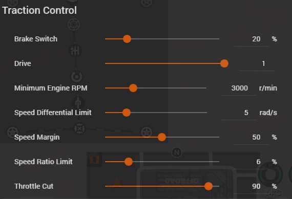 Simple, simple logic: Lightweight, non-PID controller. Easy to implement, does not interfere with factory-installed ESC/DSC (if any). Performance-oriented: Unlike the safety-oriented ESC system installed at the factory, it is somewhat slow. This mod is able to keep the wheel slip at an optimal level during acceleration due to the very fast reaction speed. With this mod, driving a powerful rear-wheel drive car (like Barstow Night snake) is like playing a driving simulator. Customizability: Adjust variables according to your driving style. Brake switch: Press more than this brake, otherwise the handbrake will disable traction control to make burnout or braking with the left foot. Credits: default0.0player |