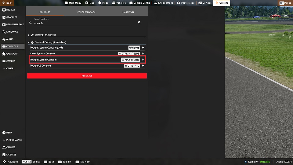 To find it, go to Controls -> General Debugging -> Switch System Console Variables