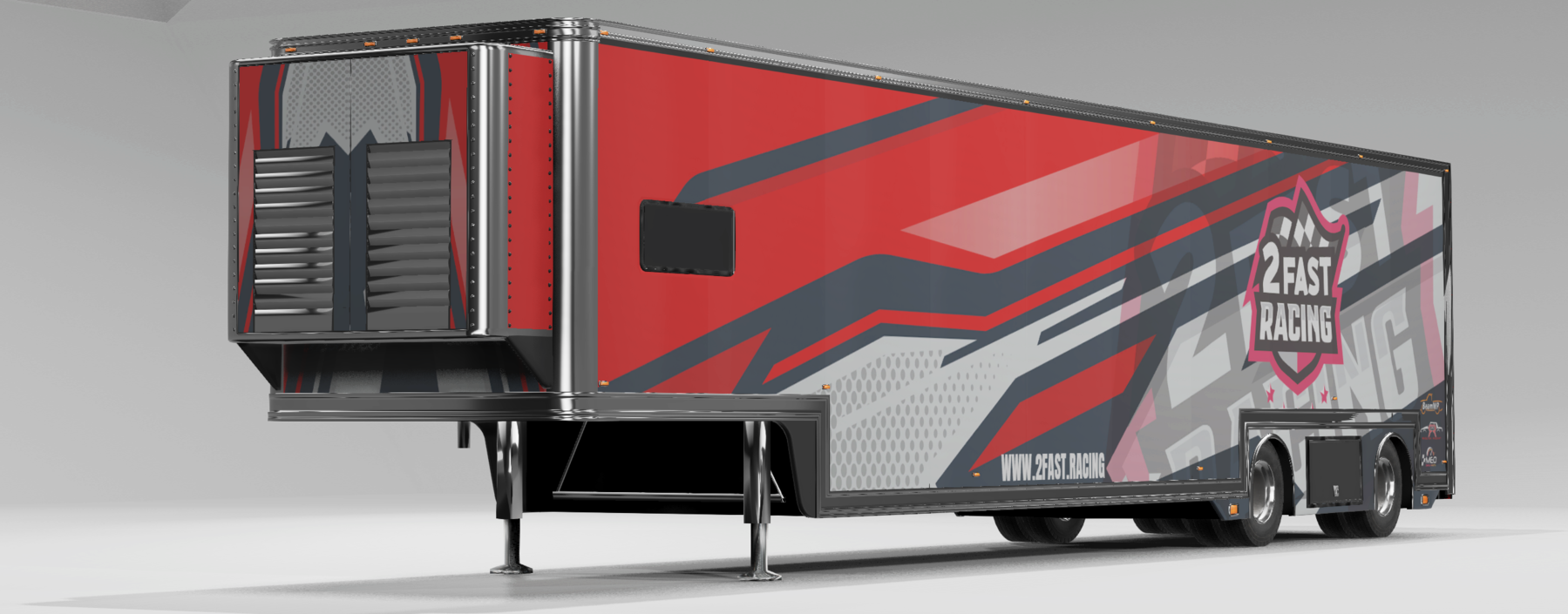 A trailer for transporting racing cars. - Three configurations; Credits: 2fastracing |