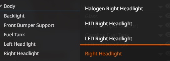 This simple mod adds realistic headlight patterns on (almost) all default vehicles. It adds halogen and LED options and has realistic ranges too. Some cars like the ETK K can also be fitted with HID headlights. Some such as the Scintilla can be fitted with "High Performance LED" headlights that offer even better lighting (~180m range). Some older / lower end cars can also be fitted with "Aftermarket LED" headlights that offer better range than halogen headlights but not as good as OEM original LED's. Aditionally, this mod also adds cornering lights on some cars such as the ETK K, ETK 800 and Bastion. If you want to disable them, you can either turn on the foglamps or change the bumper to one that has "w/o cornering lights". Credits: - |