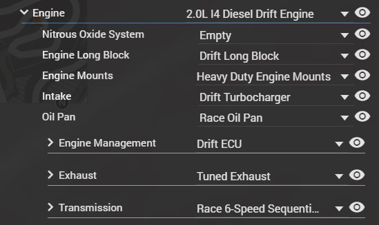 Since there was no vivace drift angle, I decided to try to make an angular kit for vivace, which is pretty good, and then it occurred to me to make a TDI drift engine, since vivace already had a diesel engine, I decided to make a small turbo upgrade. and several new control units. Credits: Tonis Hill |