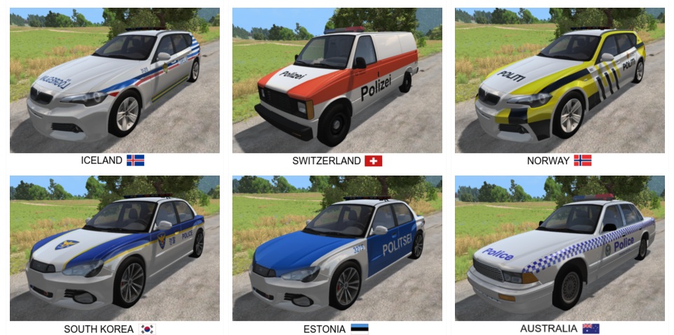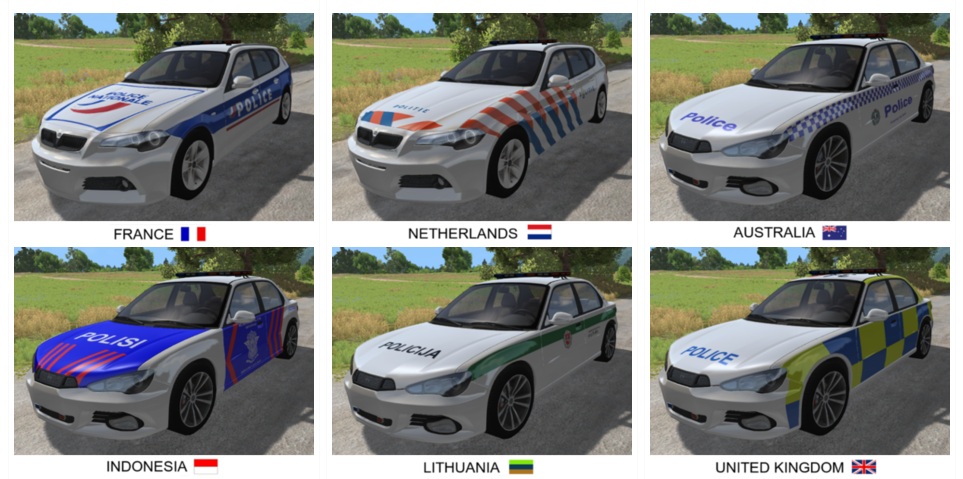 Global Police Skin Pack 1.15 Forty nine so far and many more to come! There will be ongoing updates. Requests are welcome. I will try not to add ones that have already been done before. Note: Installation: Credits: @Duster02 for the Serbian Sunburst skin and help with adding light bars and beacon Credits: jschadle |