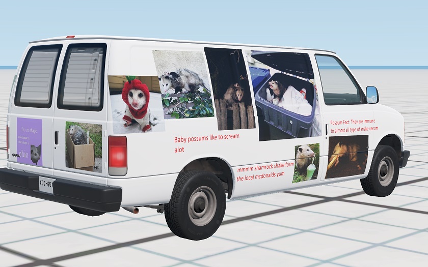 Today I present to you a skin that I have ever made, a skin that I have perfected over the years. I have lost countless days of my life to give you this absolute beauty of skin. Although I have to warn people with any hearing problems who may not look at this skin because its beauty may be too great for your heart! I'm bringing you my possum van! Credits: foxu |