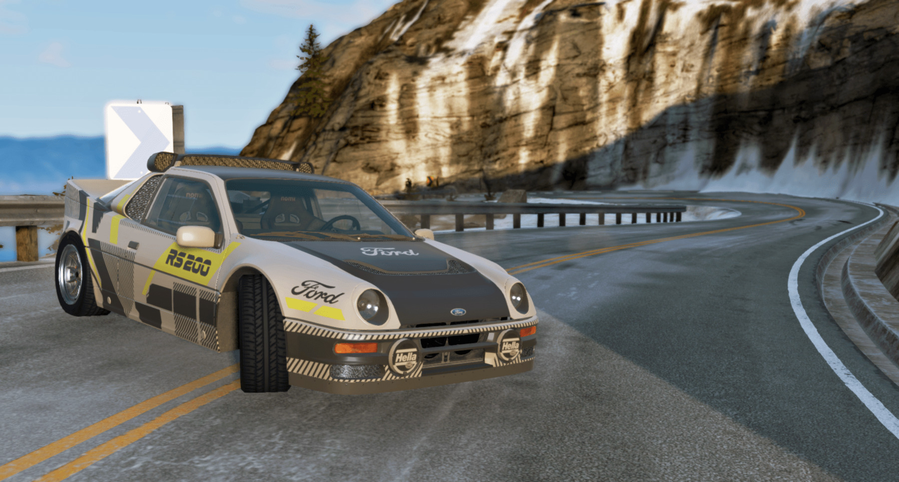 Mod car 1986 Ford RS200 Evolution 1.0 for BeamNG.drive MOD CONTAINS- Five configurations: Evolution (M), Ford Performance (M), Belga (M), Marlboro (M), Rally School (M) and Walker (M). Credits: Fordster, Revolution Racecraft |