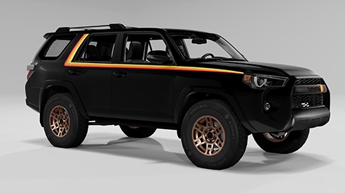A port of a 3D model from Forza Horizon 5 (4Runner TRD Pro) with Gavril Roamer mechanics and transmission and an adapted jbeam (some parts were also borrowed from Cherrier Tograc and Hirochi Sunburst to fill in some gaps in the design)