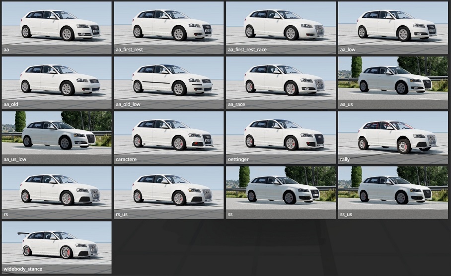 MOD AUDI A3 8P FOR BEAMNG.DRIVE The MOD is RAW AND NOT FINISHED, it will not be finished, it goes into release because it's a pity so much time spent on it. PBR textures, not everywhere, where there are no textures at all. Everything works except the mileage meter. 17 configs, (you can make more, but just too lazy). There is a bunch of stuff in the 3d model itself (dae), but it didn't wait to be added to the game. Your jbeam. The weight and acceleration do not match. Almost all possible configurations and 3 tuning body kits. A bunch of unnecessary (or necessary) interior parts. IMPORTANT: enable the display of user configurations. Quite sad, and why the mod is not finished - if the on-board computer is damaged, some body parts turn black. I don't know how to fix it. Credits: FailWork |