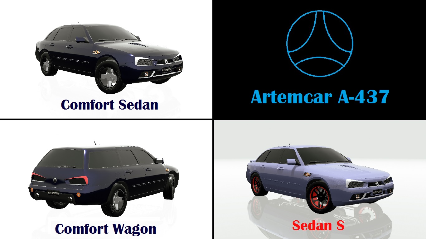 MOD AUTOMOBILE PAK ARTEMCAR A-437 FOR BEAMNG.DRIVE People who download Artemcar cars definitely have a high taste for automotive design and driving pleasure. This family of A-437 models will definitely not disappoint them. The sedan captivates with the versatility of its chassis: you can drive at a relaxed pace and enjoy a truly "feline" ride. But if you have an interesting serpentine in front of you and you want to grab it faster, then no problem, the car will only support you in this! The nice thing is that the car doesn't dictate its driving style to you - you can drive with pleasure both fast and relaxed. The station wagon has the same character, but the gearbox is shorter and the suspension is slightly tighter to handle more loads. Well, the Sport version means dynamic long-distance travel. Don't confuse the Sport version with ARMOS. This sedan does not provoke to constantly rush somewhere, ride in a drift, etc. It is much more pleasant to rush away on a journey dynamically and with the comfort of a large sedan.