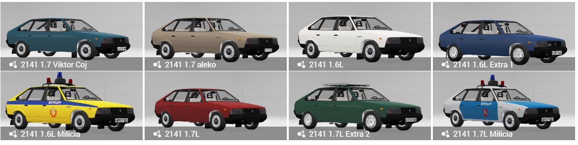 Mod AZLK 2141 1.2 for BeamNG.drive The author of the Orbit mod, I just supplemented it. What's new: Updated discs, with new textures. Removable caps. New tuning. Pbr for skins. Soviet numbers. The config of Viktor Tsoi and the export version of the Moskvich aleko. A detachable radiator grille, as well as a collective farm version of the radiator grille. Credits: Bagusik |