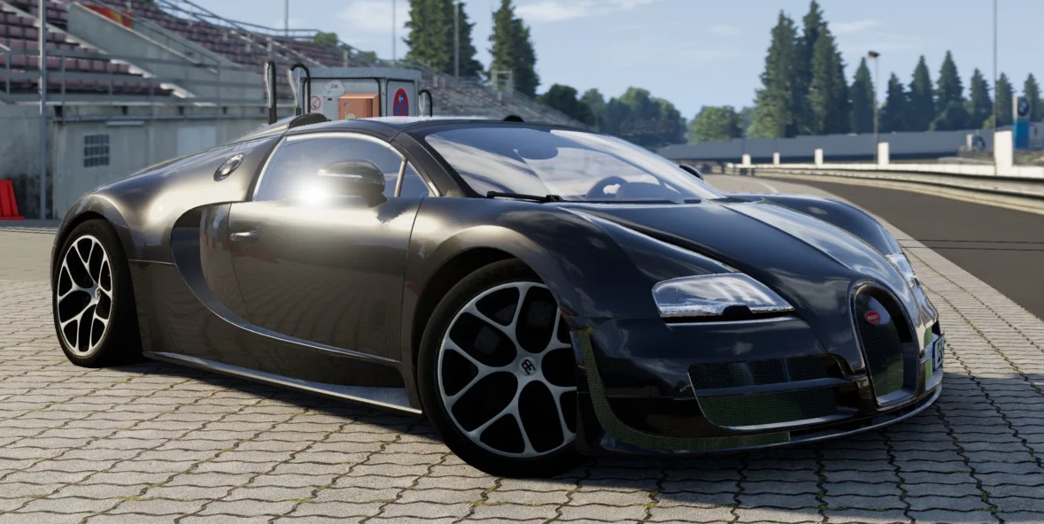 Bugatti Veyron hypercar for BeamNG. - Three configurations; - Working lighting equipment; - Your wheels; - Good damage; - Breaking glass; - Your engine; - Detailed PBR body; - Detailed PBR interior.
