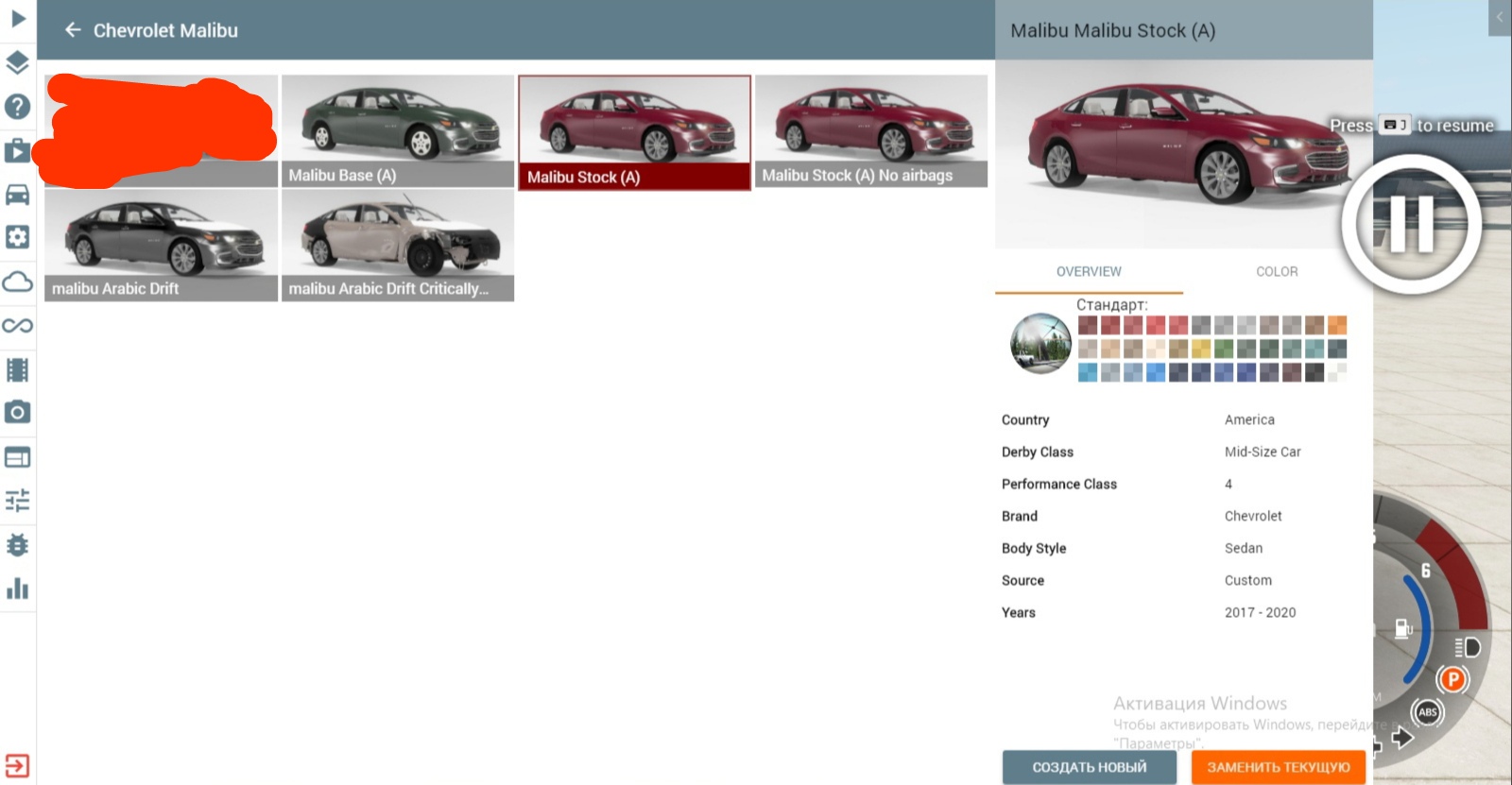 Mod CAR CHEVROLET MALIBU FOR BEAMNG.DRIVE The mod includes: - Headlights; - Your wheels; -Working speedometer \ Tachometer; - Customized license plates; - A couple of configurations; - Good looks; - Detailing. - Has airbags Cons: - Not your own Jbeam. - Small joints in the cabin