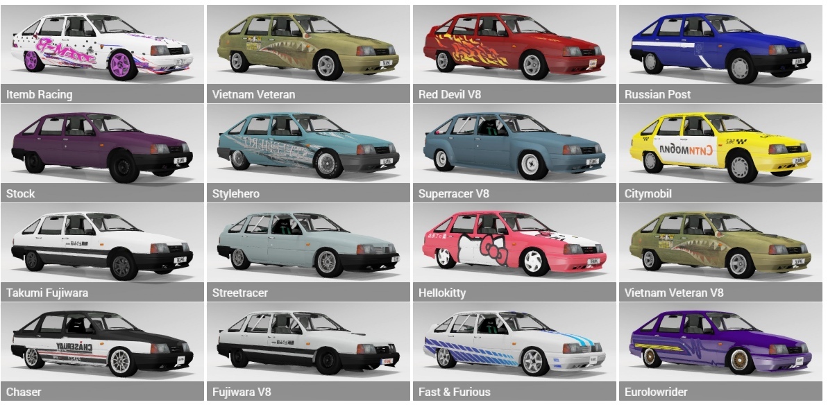 Some features of the mod: • own skeleton • the dashboard works • all lighting equipment works • many parts and tuning • sweep and own skins • various configurations The model has 16 configurations and many additional tuning details, from which you can assemble your own, individual configuration. For more individuality in the archive with the mod there is a file "uv.png", by editing which you will be able to play with your own skin! The item of this file in the skin menu is called "Your uv.png"