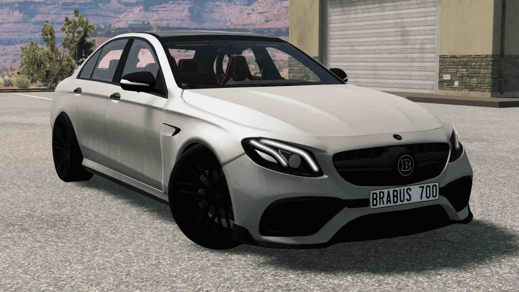 MOD CAR MERCEDES - AMG E63S BRABUS 700 FOR BEAMNG.DRIVE It changes color, its wheels, work lights and signals, the steering wheel turns, the tidy works, the navigator works, its engine, the interior lighting, the glass breaks, the worked bottom, a high-quality 3D model.