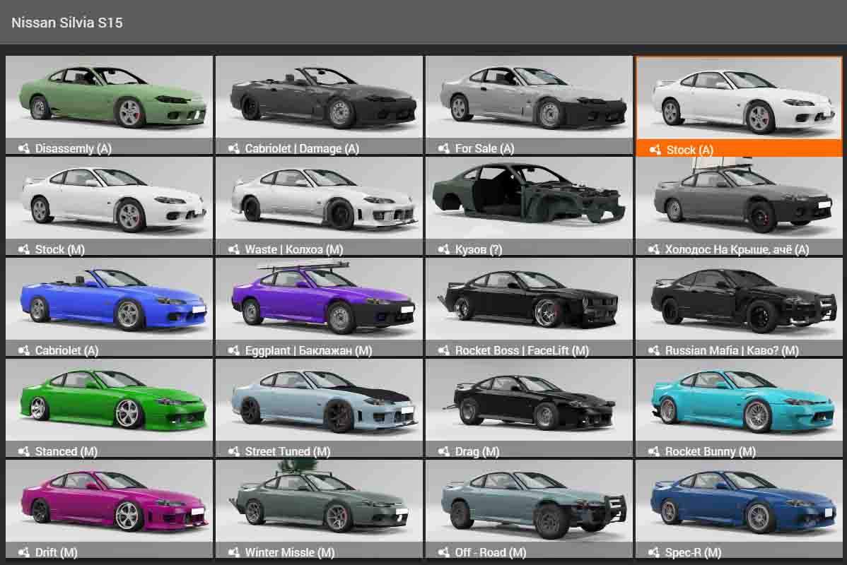 MOD CAR NISSAN SILVIA S15 FROM 12/27/21 FOR BEAMNG.DRIVE Nissan Silvia S15. Pros: - Not a bad model; - Working optics; - Your wheels; - Nice salon; - Lots of tuning; - PBR materials; - Edited jbeam; - Twenty configurations.