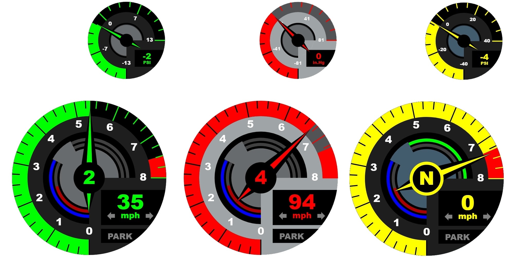 This mod adds a new set of tachometer applications (and corresponding forced induction) There are a number of color schemes from which you can choose, the BeamNG style is used by default, and you can switch between them by right-clicking on applications. There are also transparent versions for each color scheme. All applications are independent of each other, so you can have different color schemes for the respective forced induction and tachometer applications if you want. The color scheme you choose then also becomes the default color scheme for you the next time you start. Left-clicking on the apps switches the units of measurement (mph, km/h, inches of mercury, etc.) In version 3.2.3: Credits: Darthbob555 |