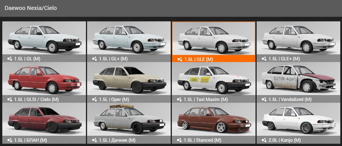 Mod car Daewoo Nexia V2.0 for BeamNG.drive Another one of my old private mods. -Good model -Good interior -Own wheels -Own jbeam -Availability of skins -Availability of tuning -Working optics. Credits: BobrEx |