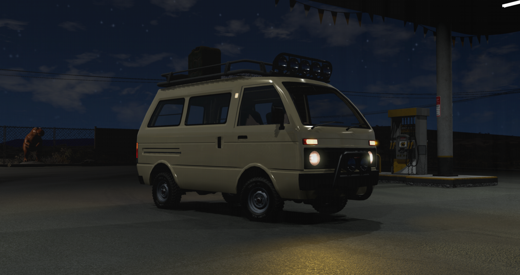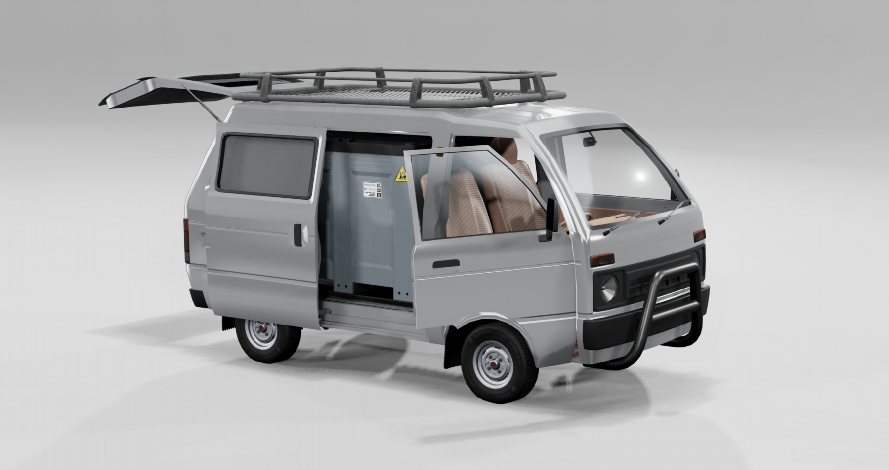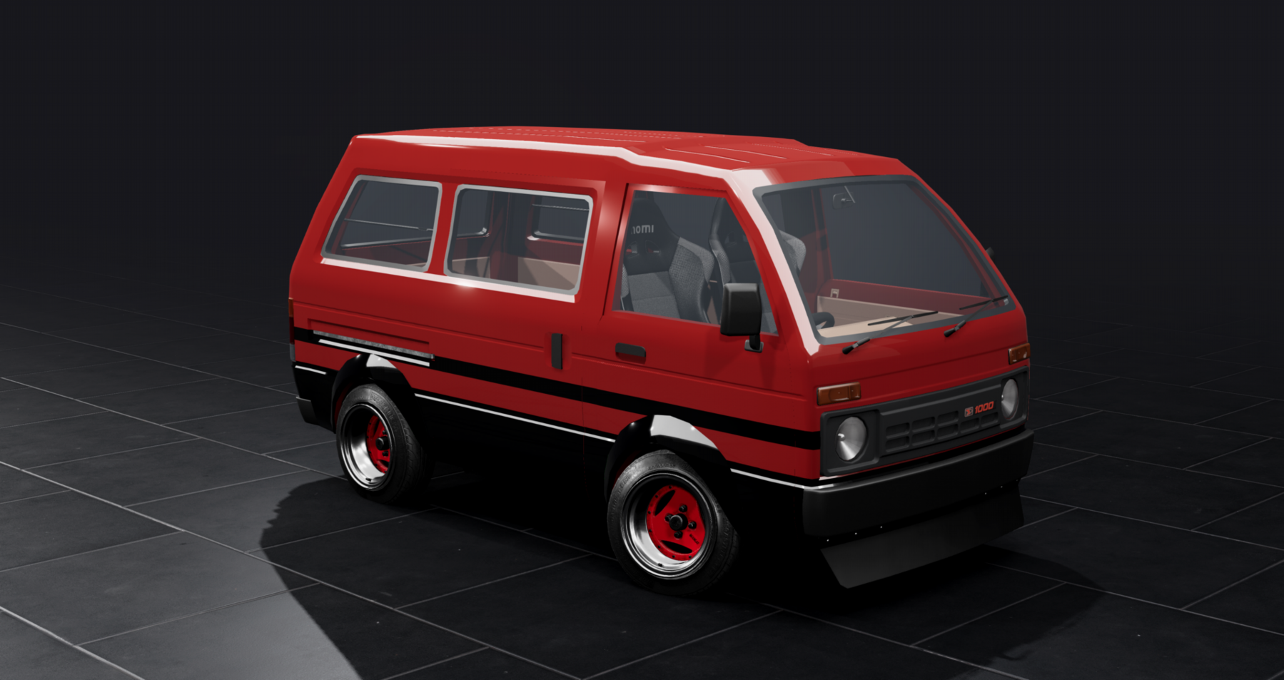 Daikisei Katai and the export version of Daikisei 1000. It has a good amount of settings and tuning, as well as a few things for the factory versions. He mostly has a custom jbeam, although some things were obtained from/stolen from vanilla cars. It has a lot of things to interact with, including opening doors and a tailgate, seats that fold down to access the engine, and even a working key.