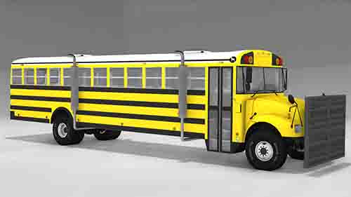 This is the Dansworth Yellow American School Bus, its built on the T-75 frame, its more powerful than it looks, it can haul up to 15 tons of additional weight. It has all the additions of a real school bus check the features below.