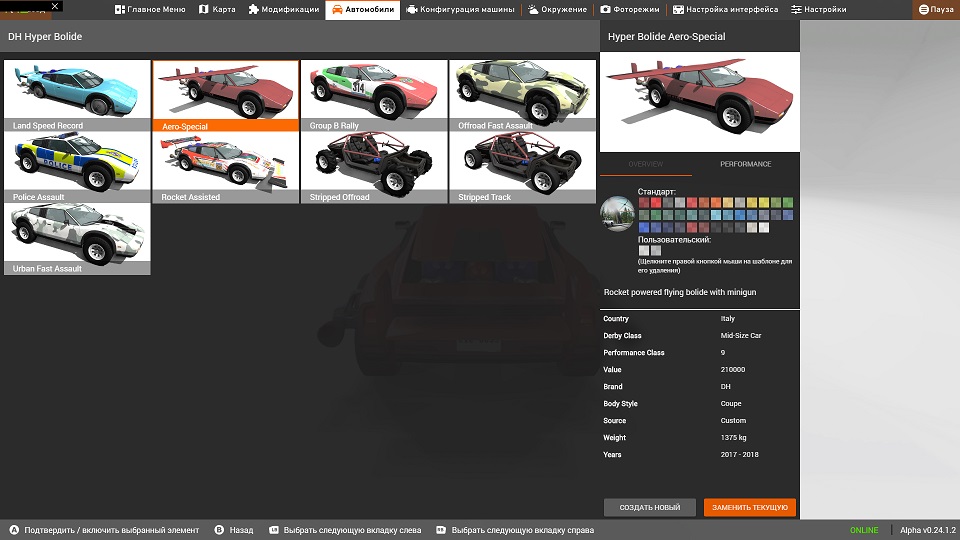MOD DH HYPER BOLIDE for BEAMNG.DRIVE Did you want to fly a car? Here is your dream come true) The mod is good, the working buttons you need can be put in "Settings"-"Control" No texture was found Checked on version 0.24.1.3 There are 9 configs in total There is a machine gun Credits: - |