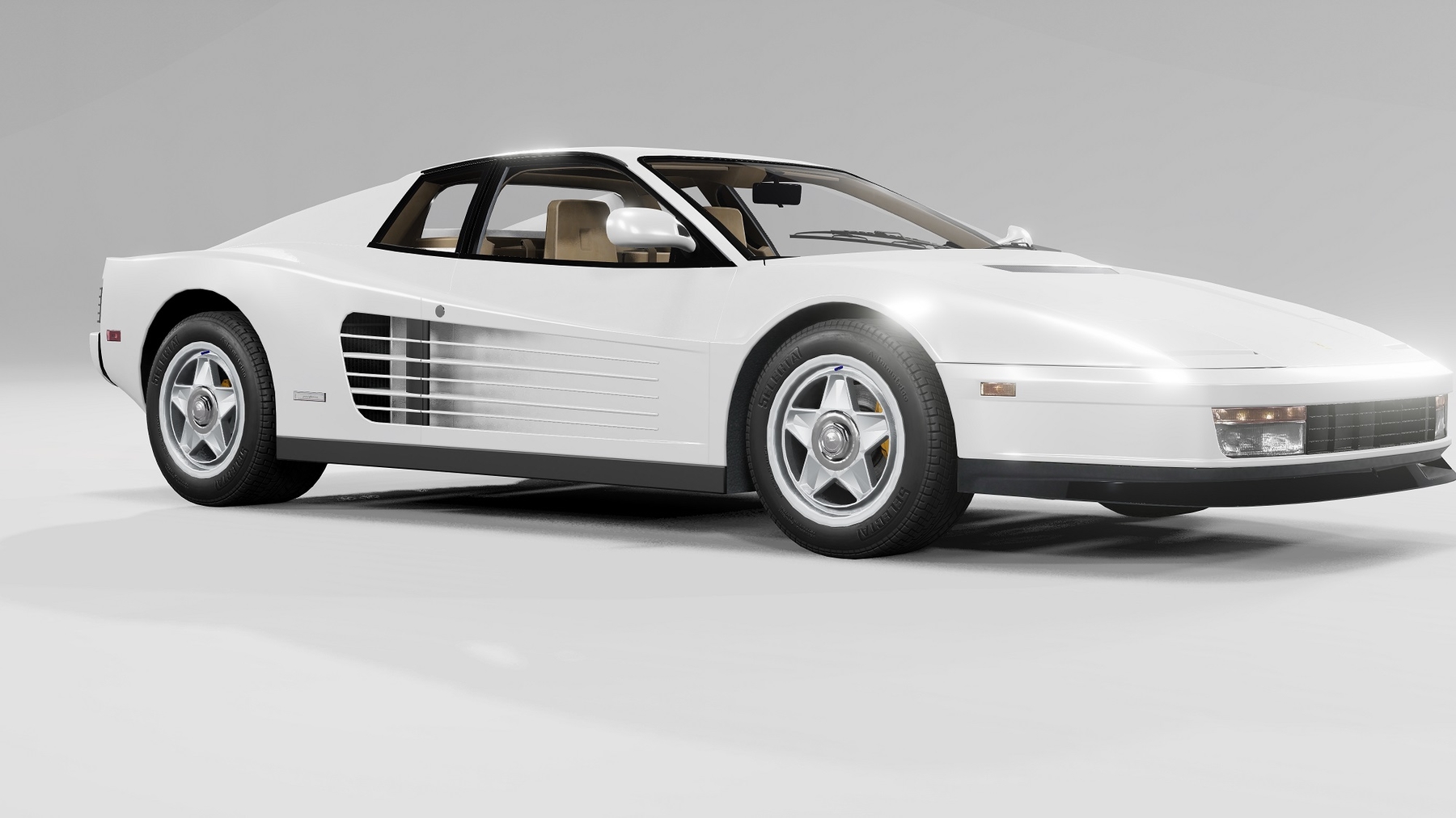 Ferrari Testarossa sports car for BeamNG. – 1 Configuration; – A good model; – Medium interior; – Working light; – Your wheels.