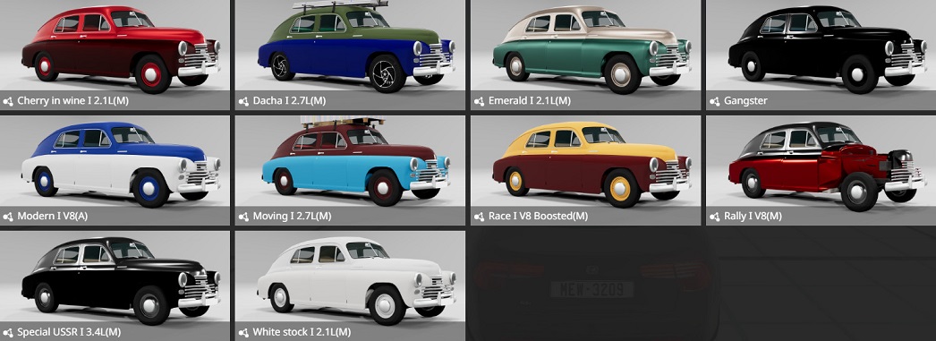 MOD GAZ M20 VICTORY [RELEASE] 1.1 FOR BEAMNG.DRIVE This is Gaz M20 Victory from BBMods! The mod is of high quality and includes: ✅1. A good 3D model modified by us. 2. Fully own 100% Jbeam. ✅3. Good damage. ✅4. PBR Textures. 5. PBR of the Body. 66. Working: Speedometer, steering wheel, pedals. ✅7. Realistic motors and gearbox (have the characteristics of real motors and gearbox) ✅8. Has 10 configurations. ✅9. A large number of interior trim materials. ✅10. Full working hours. ✅11. Worked out its bottom. ✅12. Worked-out under-hood space. ✅13. Own wheels. ✅14. Working mirrors. ✅15. Properly configured optics. ✅16. Two-tone body. Installation: Unpack the zip and throw this folder into vehicles, or wherever you throw it there. Credits: BBMods |