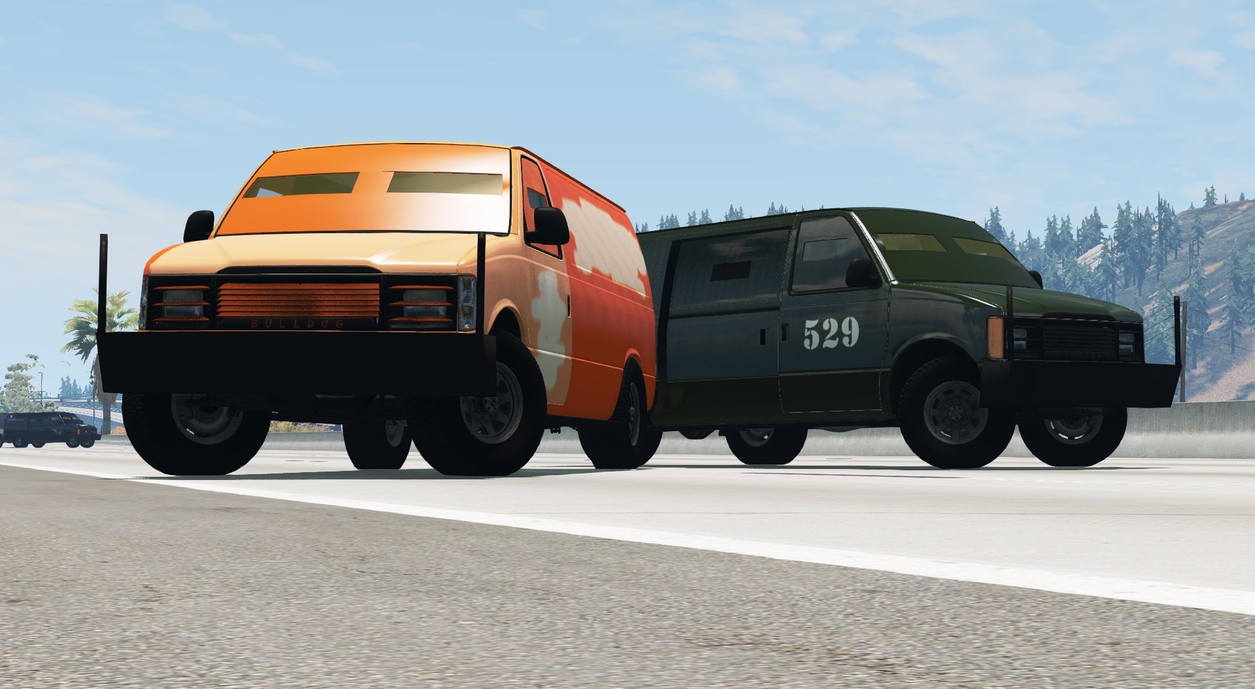 This is an armored van, so it has a lot of special items. It received a side door for exchanging money, the body was globally reinforced, which significantly weighed the van, and the reinforced front bumper allows you to hit vehicles, limiting damage!