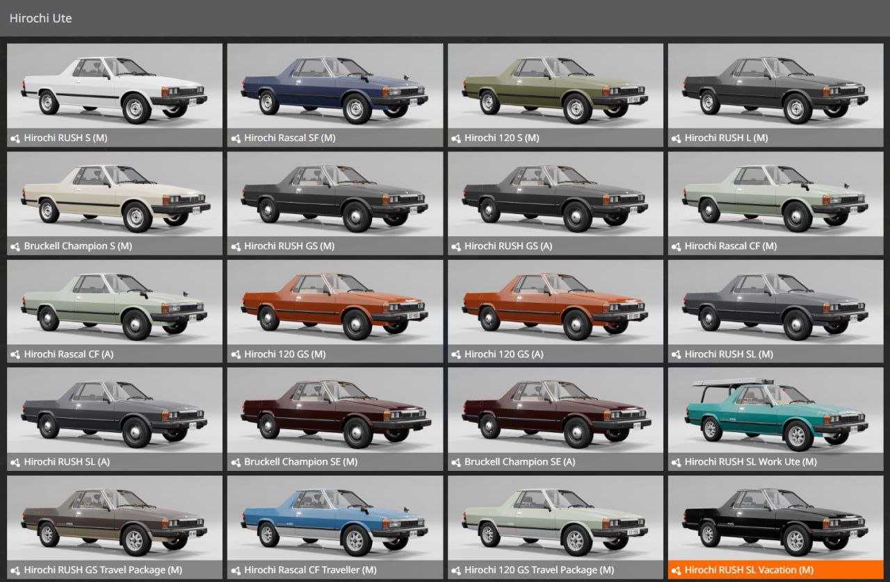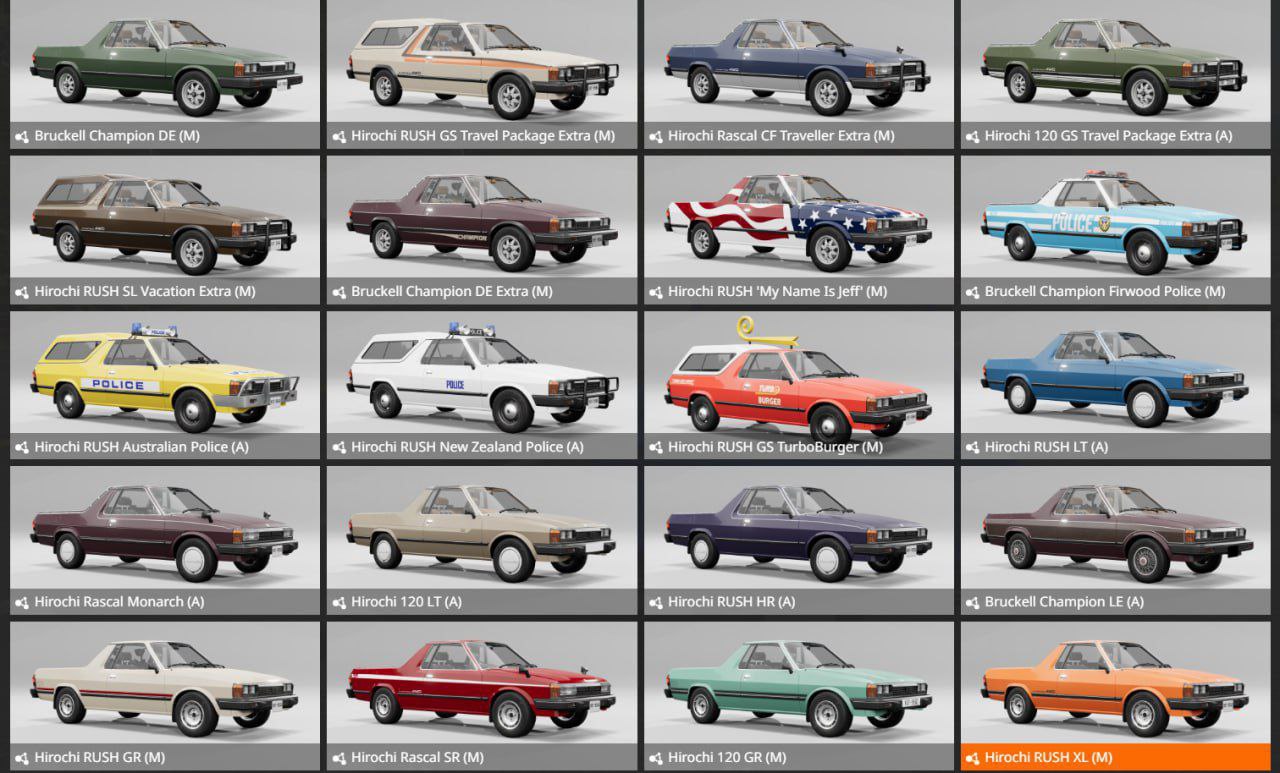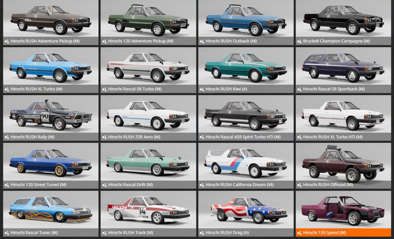 Hirochi is a Japanese manufacturer of automobiles and musical instruments. Thus, Hirochi can be considered an analogue of Yamaha. High-quality bodywork; Well-designed interior; There is an openable + additional functions in the cabin; Good damage Credits: BeamNG |