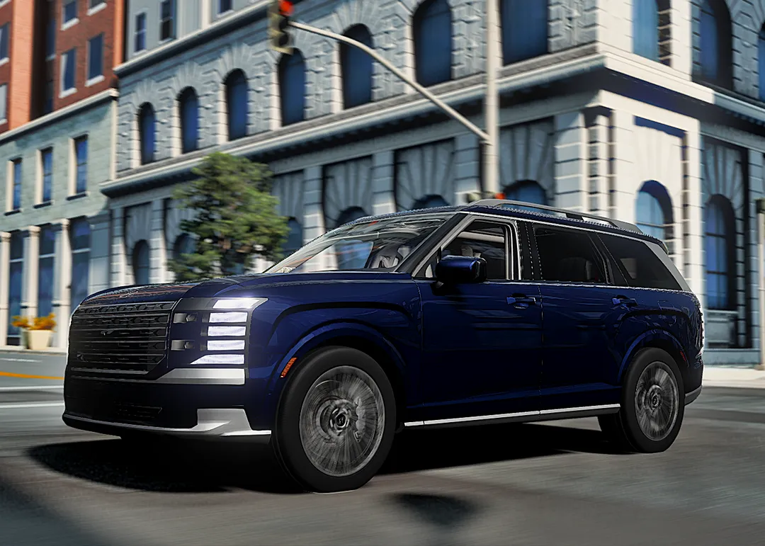 The Palisade features a bold, angular silhouette. It features branded vertical LEDs, an elegant light strip on the radiator grille, and distinctive silver trim on the sides. Thanks to the increased wheelbase and hidden elements such as the rear wiper and exhaust system, the design looks much cleaner and more premium than before.